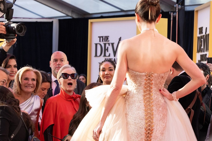 На премиерата на долгоочекуваното продолжение на филмот „Ѓаволот носи Прада 2“, одржана на 20 април во Њујорк, легендарната актерка била снимeна како го одобрува модниот избор на својата колешка со поглед кој потсетил на немилосрдната уредничка Миранда Пристли, а снимката набрзо стана вирална.