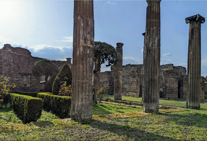 Помпејскиот форум, некогашното средиште на верскиот, политичкиот и културниот живот на древниот град, е воедно и негов главен плоштад долг 142 и широк 38 метри, опкружен со импресивна колонада од дорски и јонски столбови. Во негова непосредна близина се наоѓаат одлично сочувани бањи, додека Палестрата со базен во центарот открива простор каде младите Помпејци се подготвувале за физички и интелектуални предизвици. Тука е и големиот театар, некогашен дом на трагедија, комедија, танц, музика и политички собири, како и храм посветен на египетската божица Изида, бројни приватни резиденции и раскошни аристократски куќи. Подгответе се за повеќечасовно истражување, бидејќи сето ова е само дел од богатството на локалитетот што едноставно мора да се види во Помпеја.