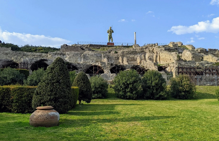 Помпеја како туристичка дестинација врие од историски локации што мора да се видат. Една од најпопуларните дефинитивно е најстариот до денес сочуван римски амфитеатар, кој можел да прими 20.000 луѓе и во кој се организирале борби со животни и гладијатори, како и извршувања на казни. Тука е и Храмот на Аполон, посветен на тој грчки и римски бог. Токму за време на неговото владеење се одржувале гладијаторски игри, но и театарски претстави во чест на неговата сестра Дијана и него.