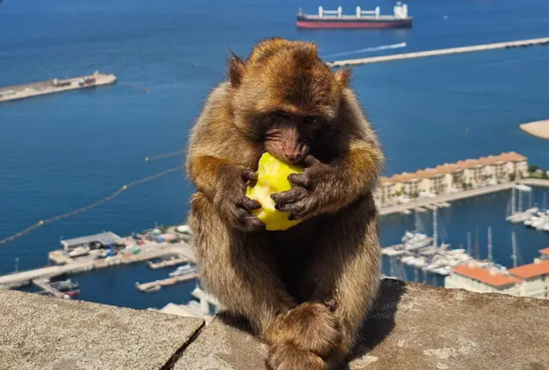 На Гибралтарската карпа, преполна со туристи, една од најчестите глетки се мајмуните макаки кои просат храна, а понекогаш успеваат и да украдат грицки од невнимателни посетители.