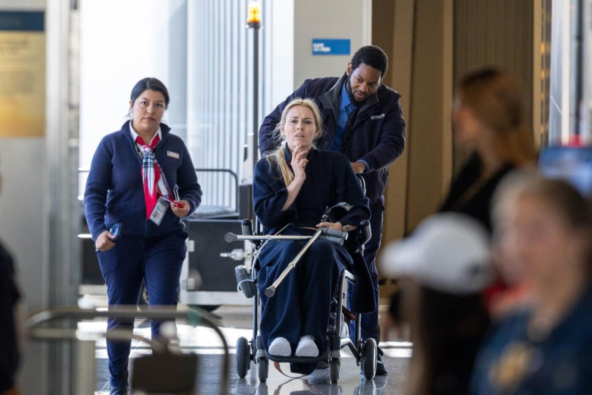 Новите фотографии ја прикажуваат скијачката ѕвезда во инвалидска количка, додека персоналот на аеродромот ѝ помагал да се движи. На дел од фотографиите може да се забележи дека Вон носела и патерици.