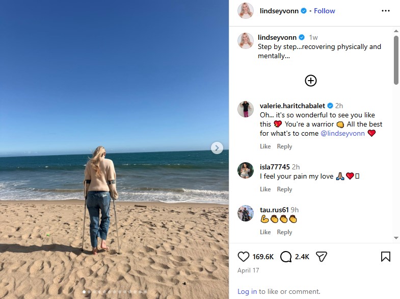 „На половина пат, почнав да се потам. Имав толку многу болки. Врескав со сета сила: „Извадете ме надвор“. Едноставно не попушташе. Ми се врежа во мозокот“, изјавила таа претходно за „Венити фер“. Скијачката, трикратна освојувачка на златен олимписки медал, неодамна открила и дека се борела со депресија по повредата.