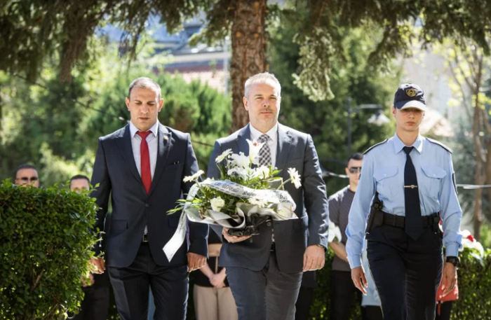 Свежо цвеќе положи и директорот на Бирото за јавна безбедност Александар Јанев, како и претставници од министерството за спорт.