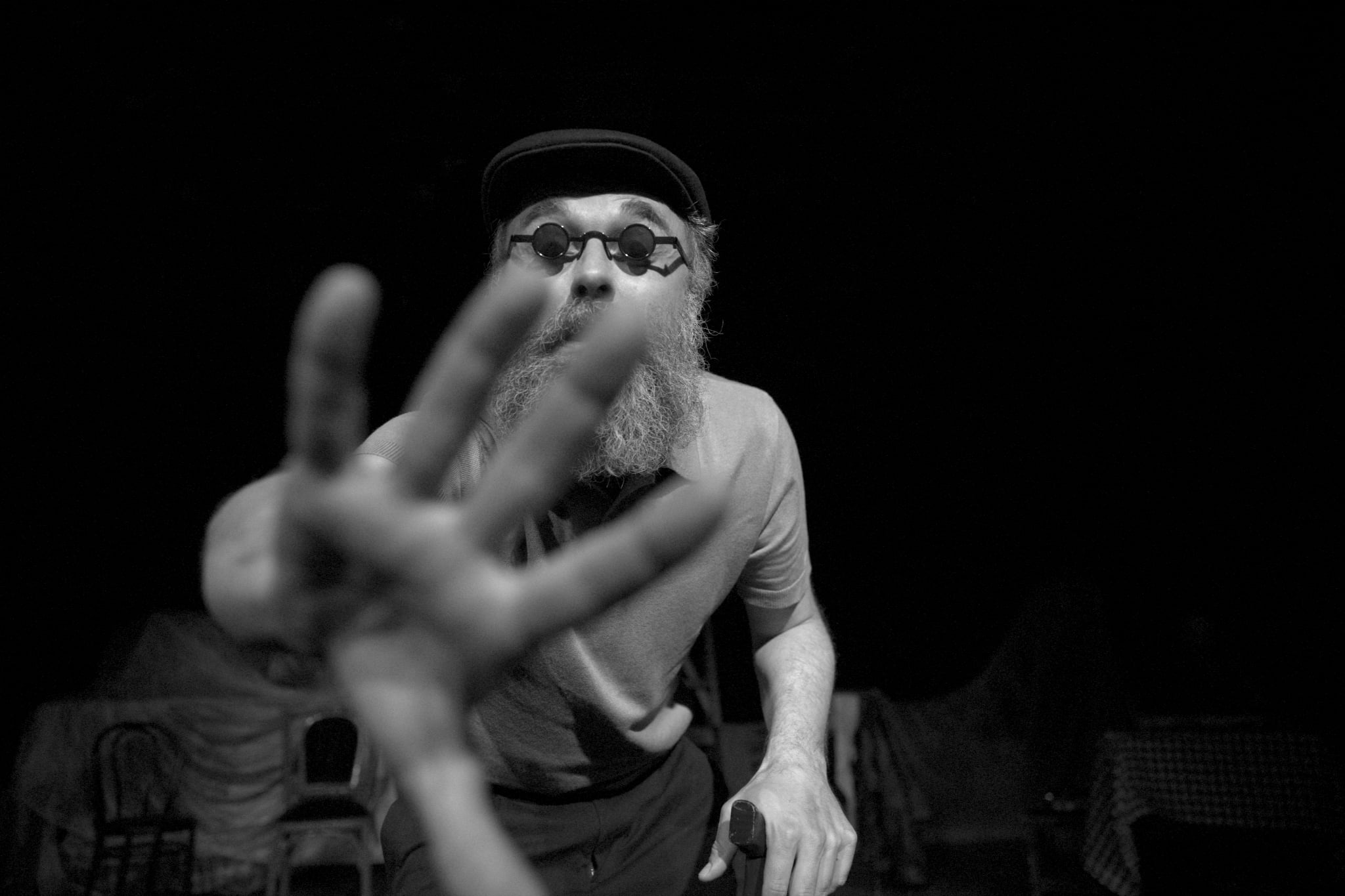 Авторот создава живописна сценска фреска исполнета со различни ликови – од војници, професори, музичари и актери, до мигранти и затвореници. Претставата е структурирана во тринаесет сцени, поврзани преку ликот на стар слеп човек кој ја носи сенката на Едип и неговата трагична мудрост, поставена врз современите општествени настани.